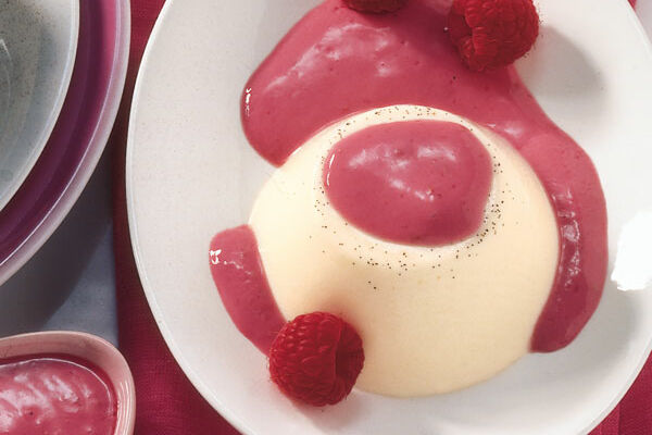 Cremiger italienischer Vanillepudding mit fruchtiger Himbeersauce - klingt das nicht herrlich. Jetzt ausprobieren mit Chefkochde.