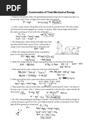 Answers Worksheet Conservation Of Total Mechanical Energy Pdf Potential Energy Mass
